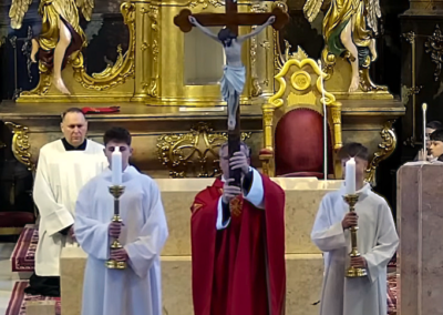 Na veľký piatok sa Pán ocitá na svojej bolestnej ceste smrti a ukrižovaním zomiera. Je to aj deň poslednej krížovej cesty a poklony k božiemu hrobu.